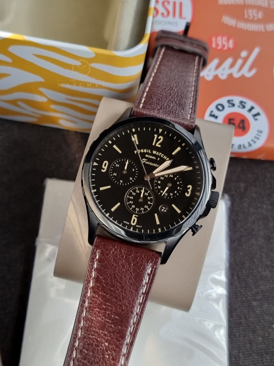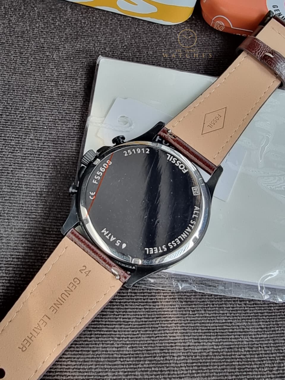 Fossil Men’s Chronograph Quartz Leather Strap Black Dial 46mm Watch FS5608