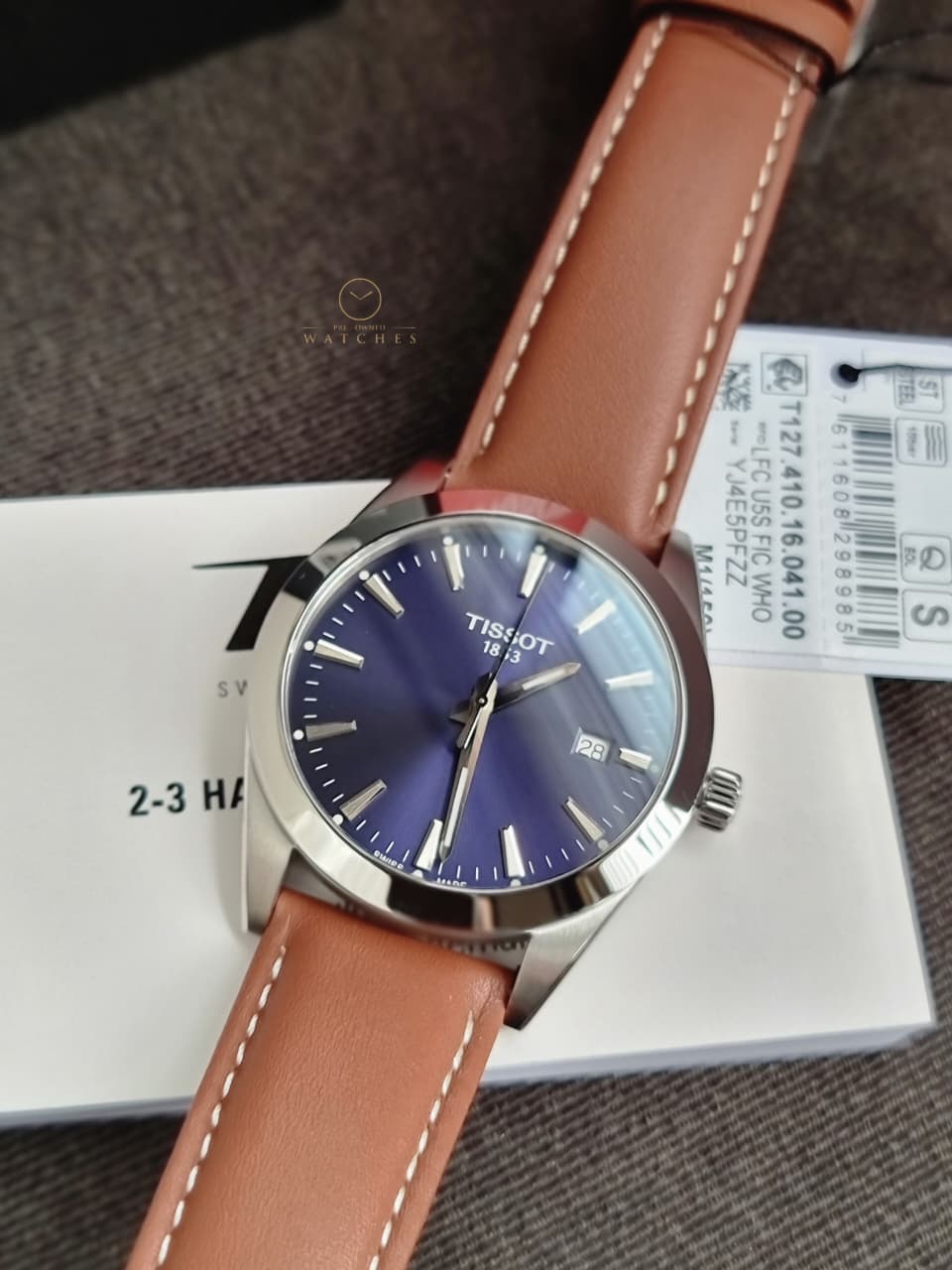 Tissot Gentleman Brown Leather strap Blue Dial Quartz Watch for Men's - T127.410.16.041.00