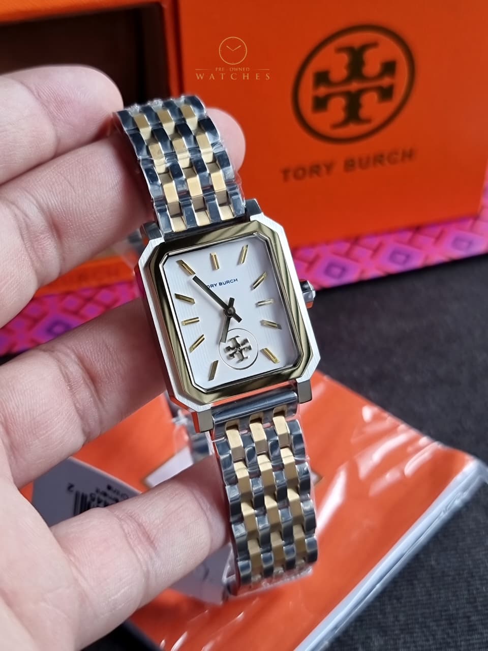 Tory Burch Women's The Robinson Watch, Ivory/Silver/Gold, One Size TBW1501