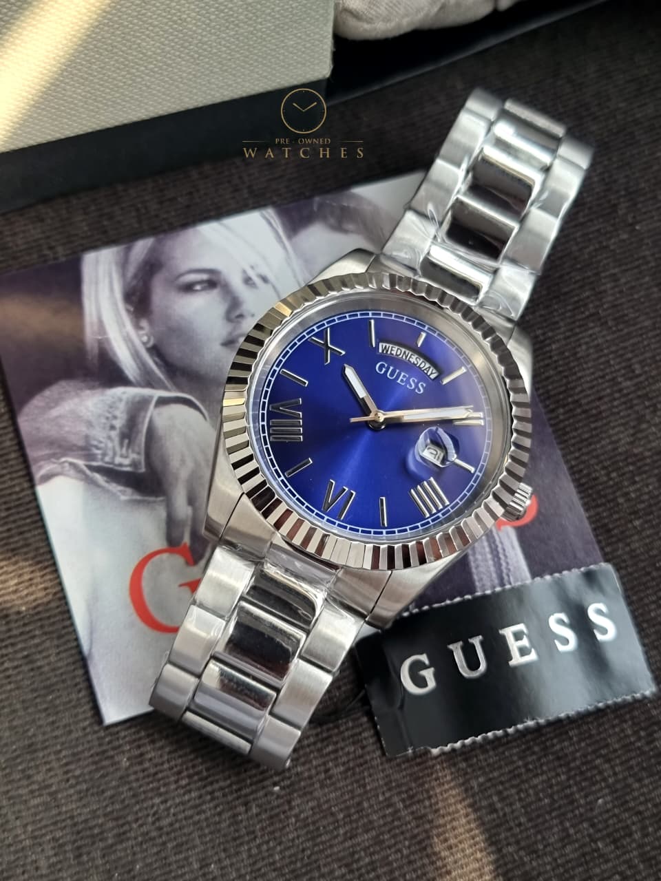 Guess Men’s Quartz Silver Stainless Steel Blue Dial 42mm Watch GW0265G7