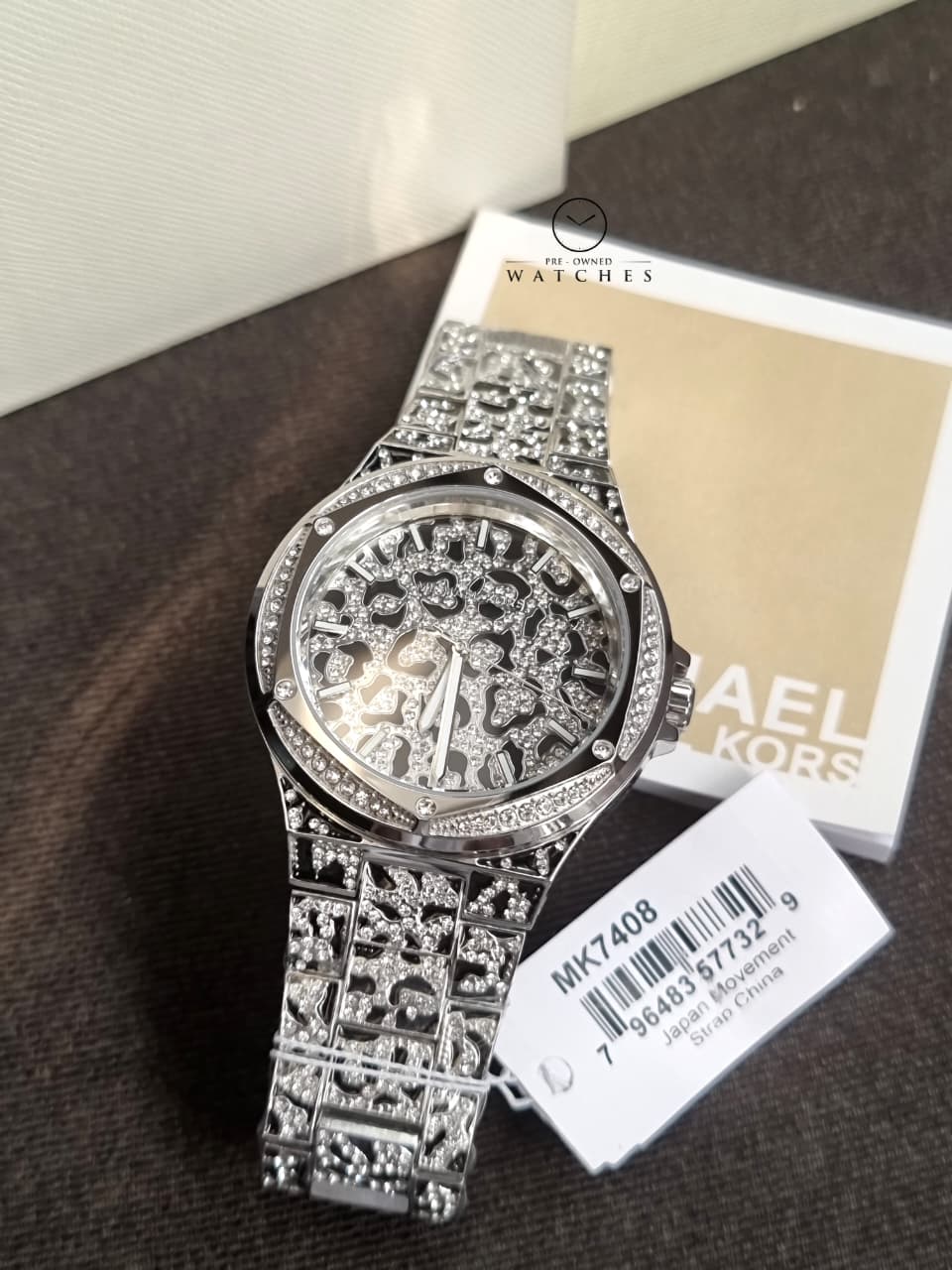 Michael Kors Lennox Analog Crystals Silver Dial Silver Steel Strap Watch For Women - MK7408