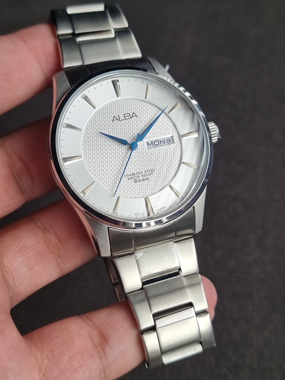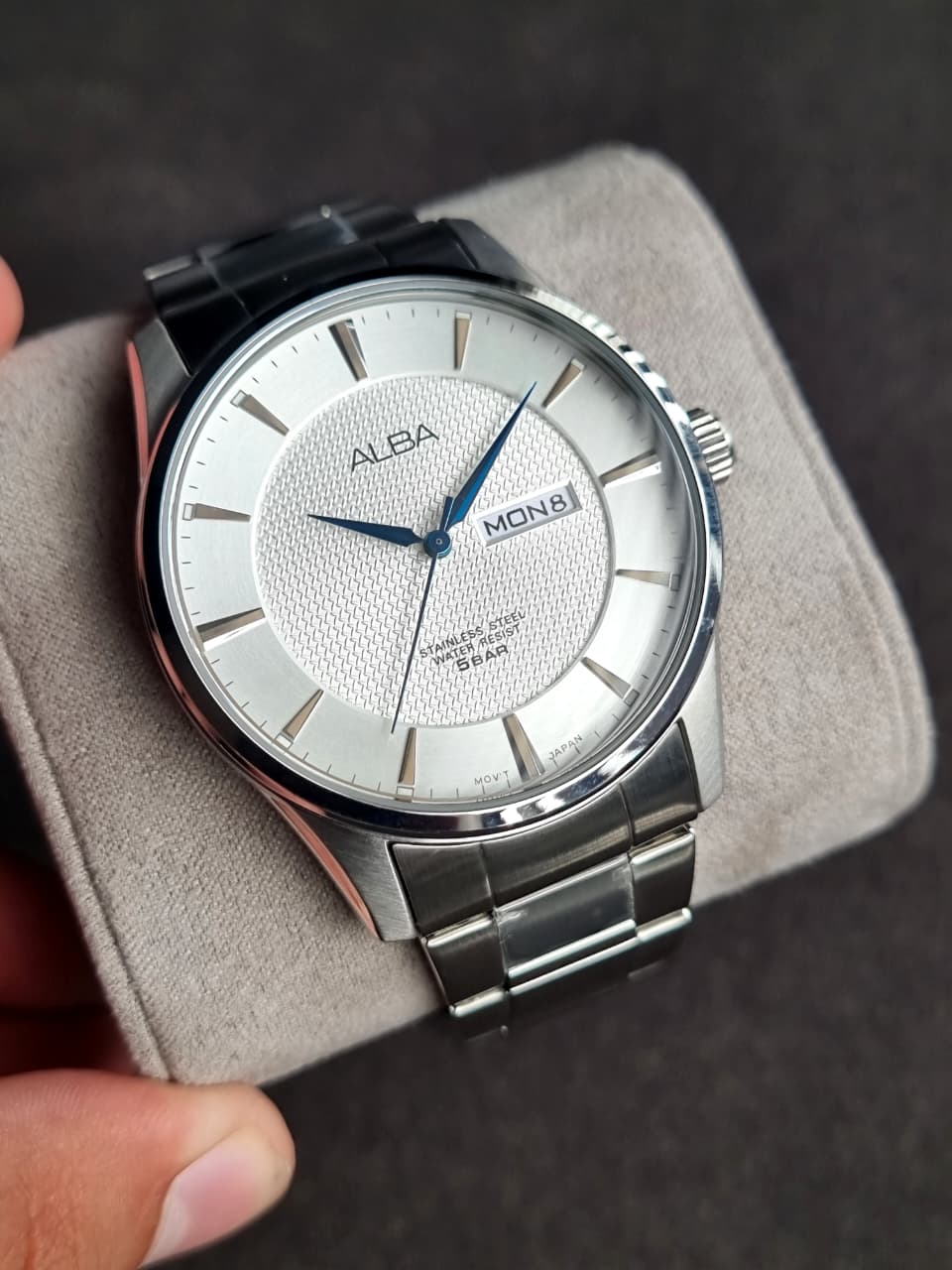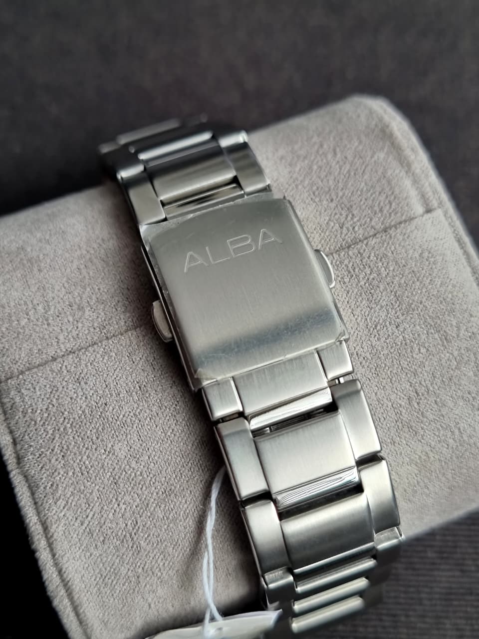 Brand Name Alba  Case Material Stainless Steel  Case Color Silver  Dial Size 45mm  Dial Color White  Strap material Stainless Steel  Strap Color Silver  Quartz Watch