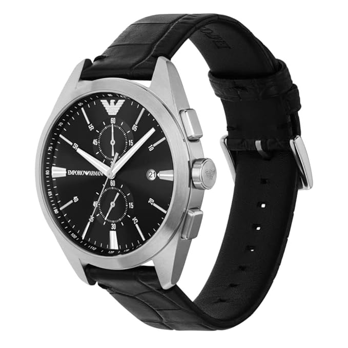 Emporio Armani Mens Leather Analog Black Dial Watch-Ar11542, Band Color:Black