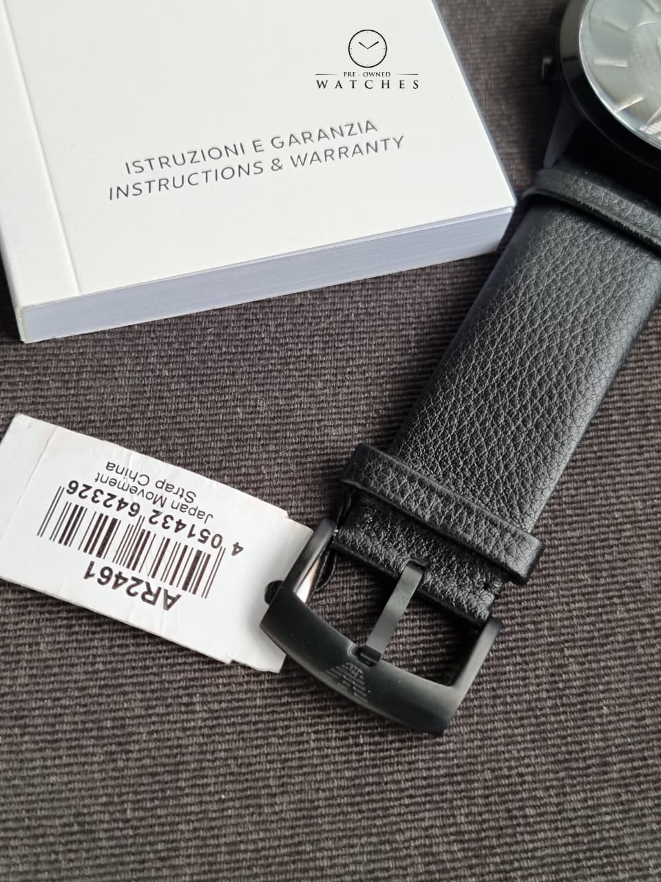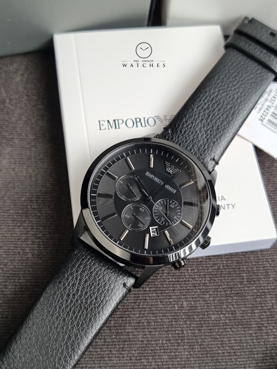 EMPORIO ARMANI Sportivo Black Leather Strap Black Dial Chronograph Quartz Watch for Gents - AR2461