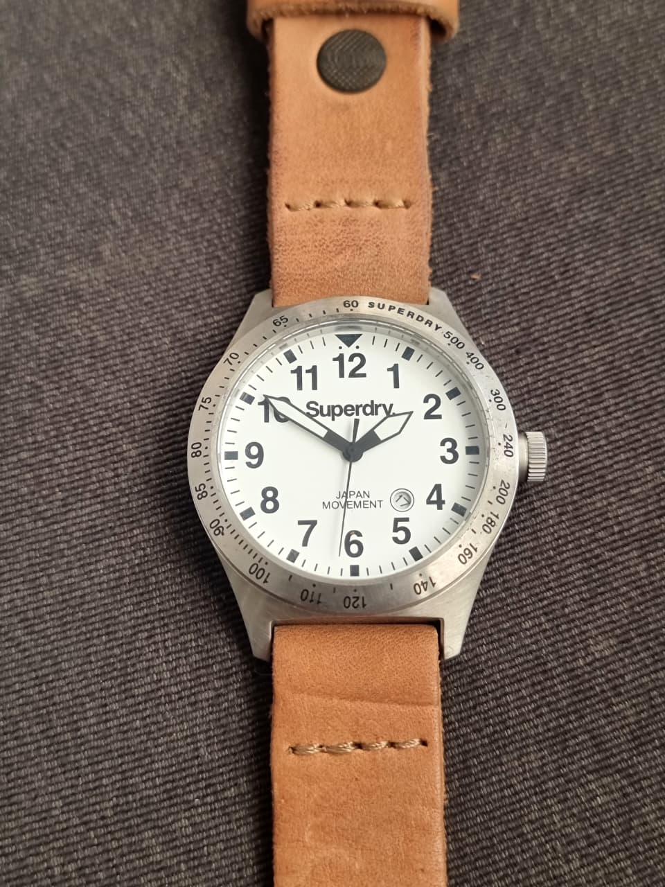 Superdry Triton Leather Strap Men's White Dial 44mm Watch SYG105TW