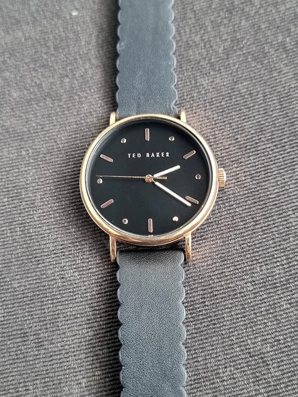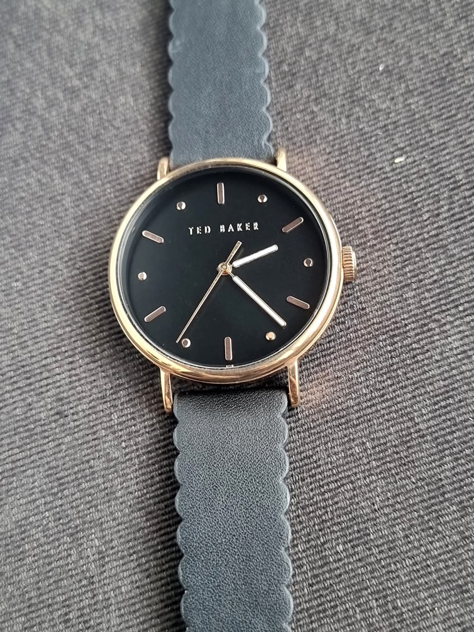 Brand Name Ted Baker  Case material Stainless Steel  Case Color Rose Gold  Dial Size 37mm  Dial Color Black  Strap material Leather  Strap Color Black  Quartz Watch
