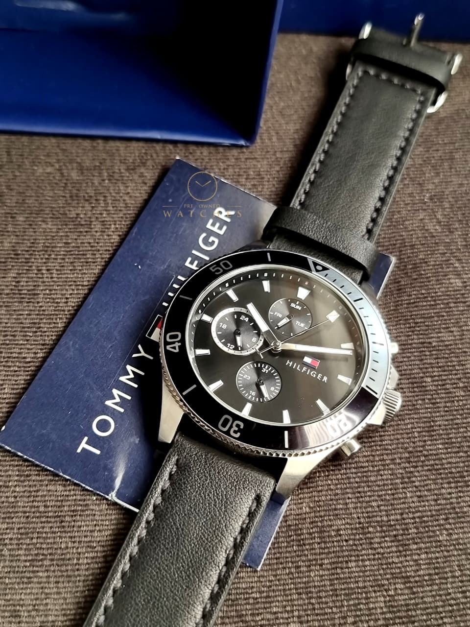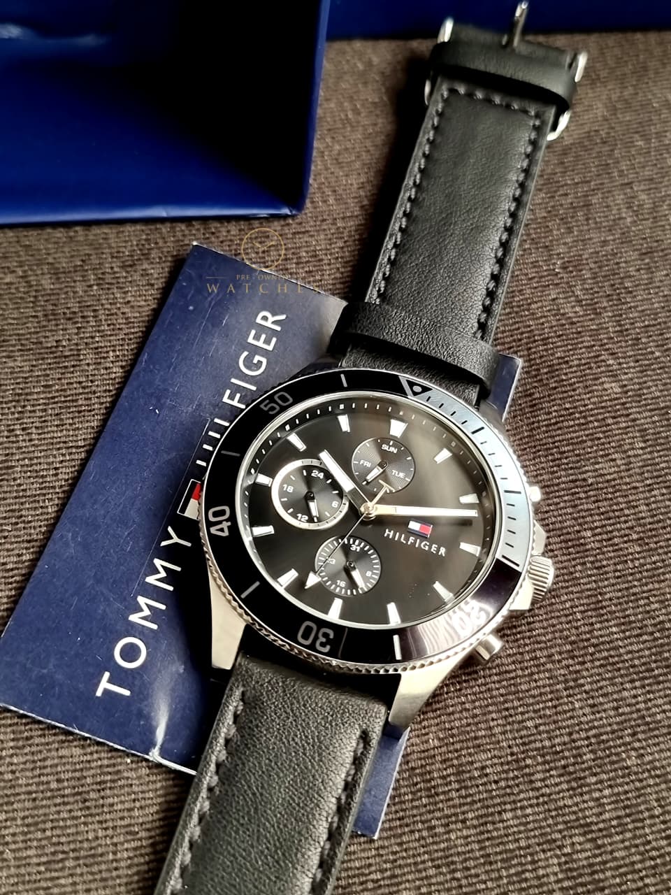 Tommy Hilfiger Men’s Quartz Black Leather Strap Black Dial 46mm Watch 1791984