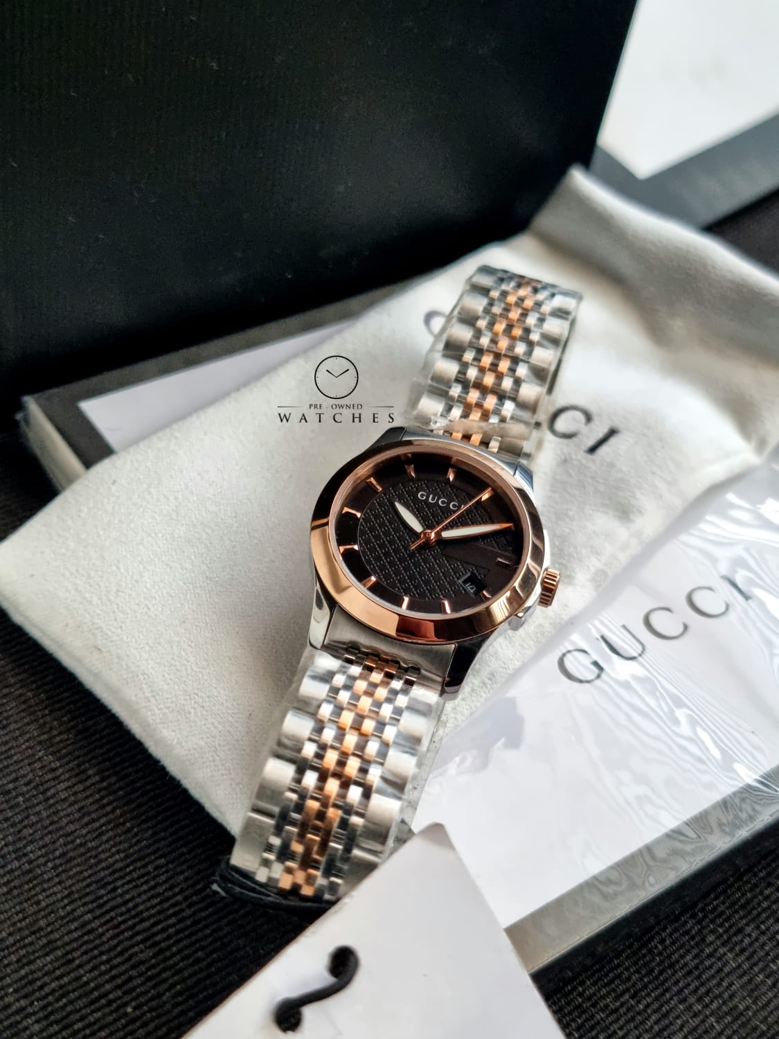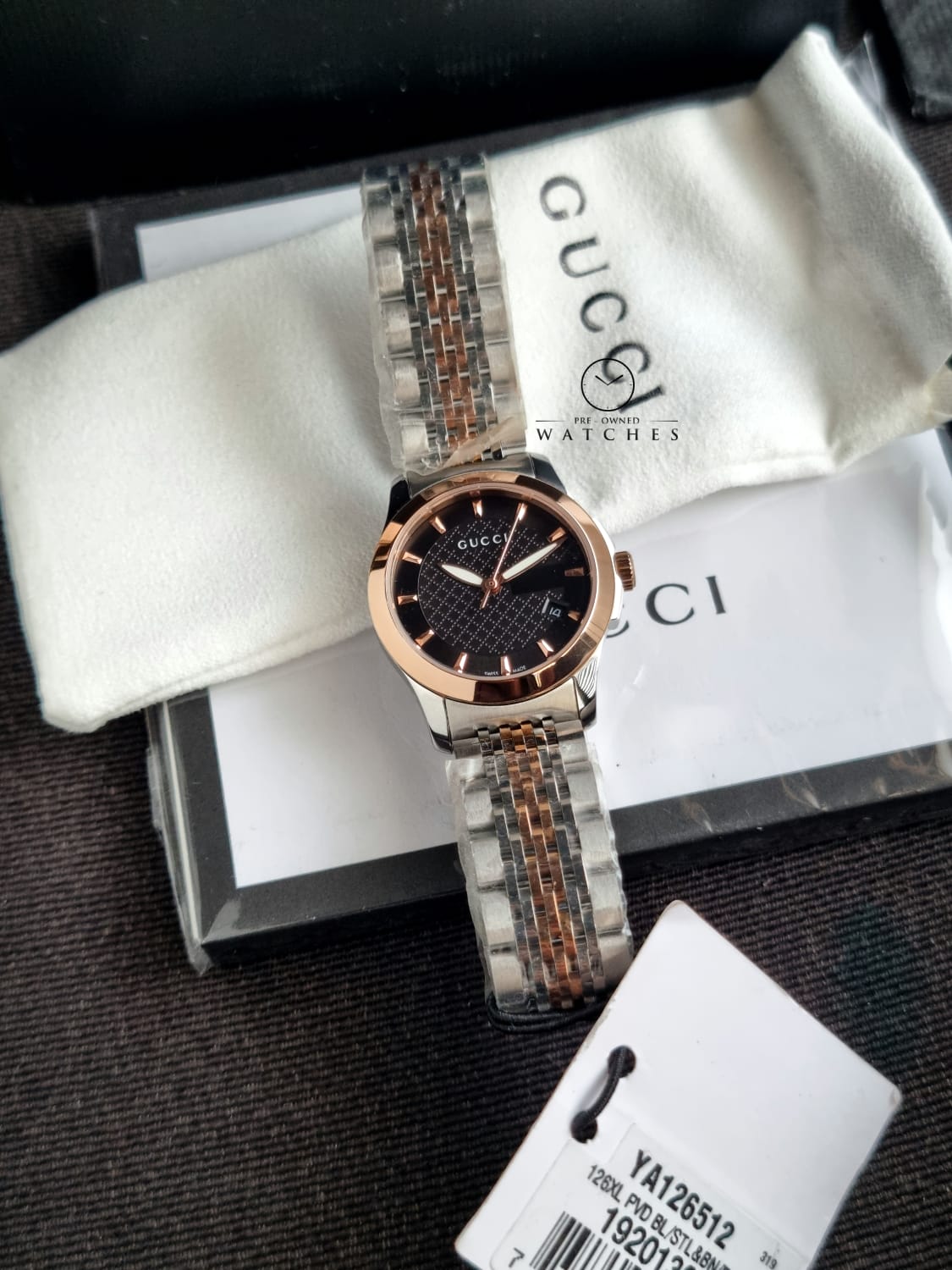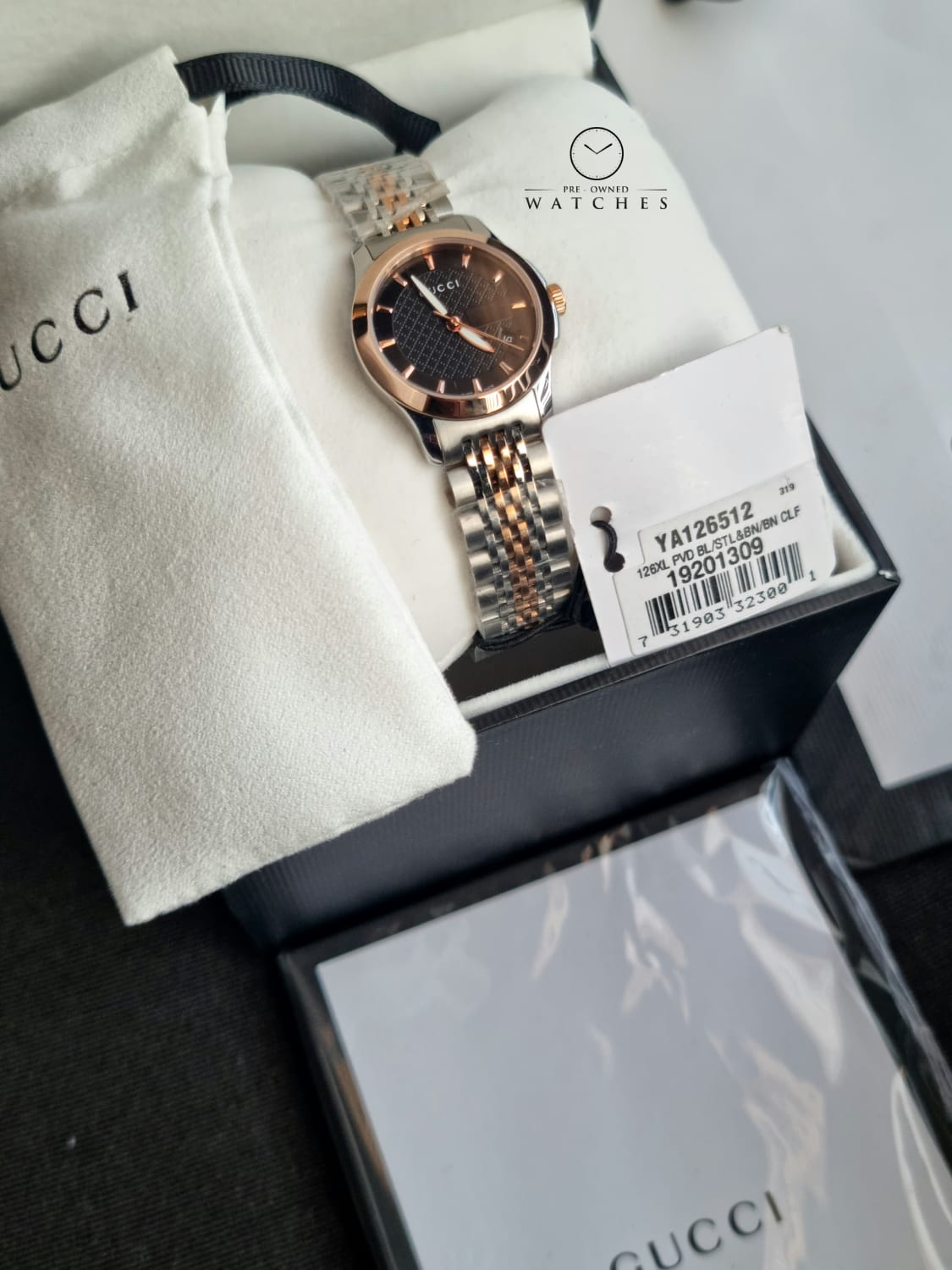 Gucci Women’s Analog Quartz Stainless Steel Swiss Made Black Dial 27mm Watch YA126512