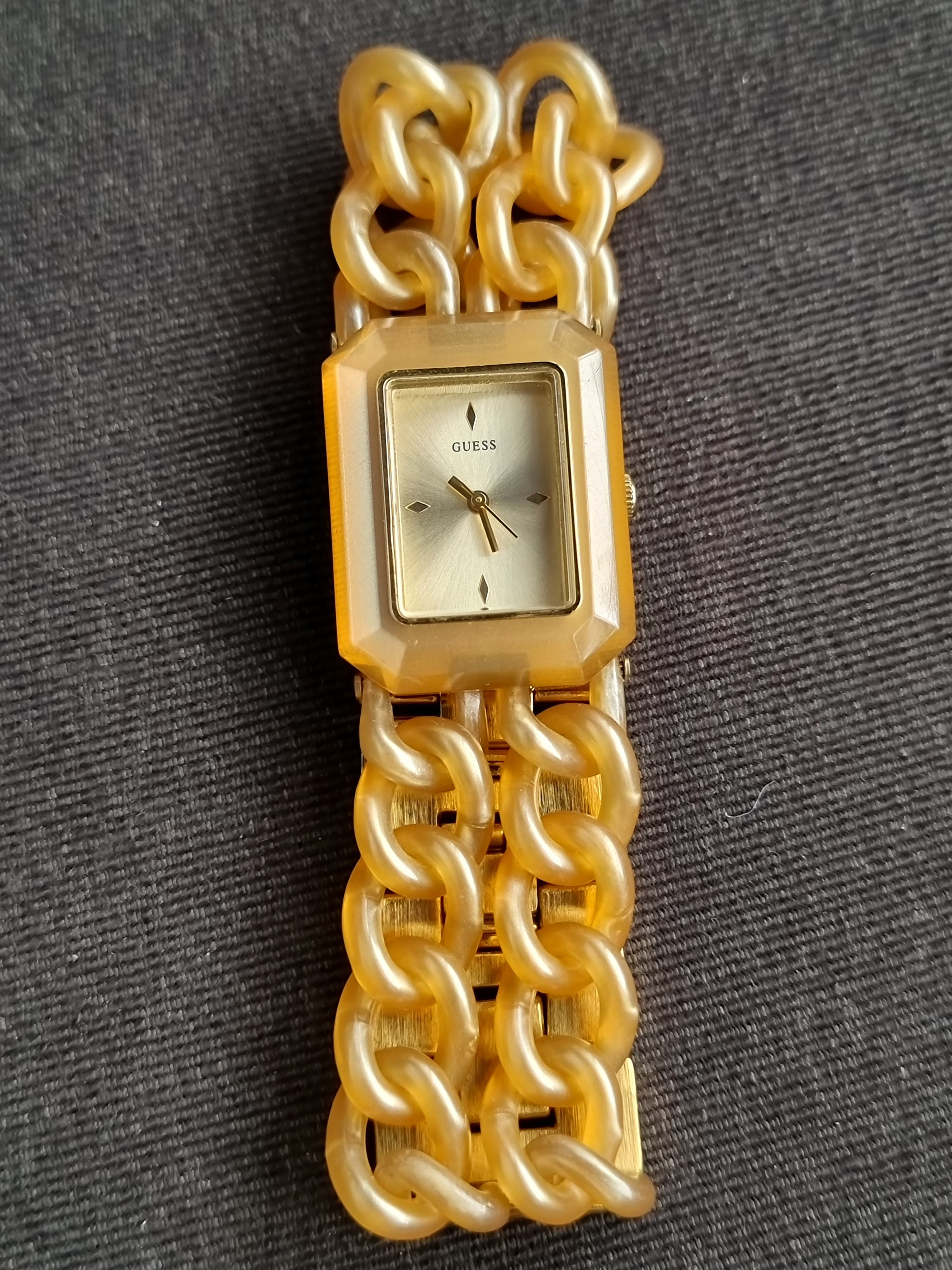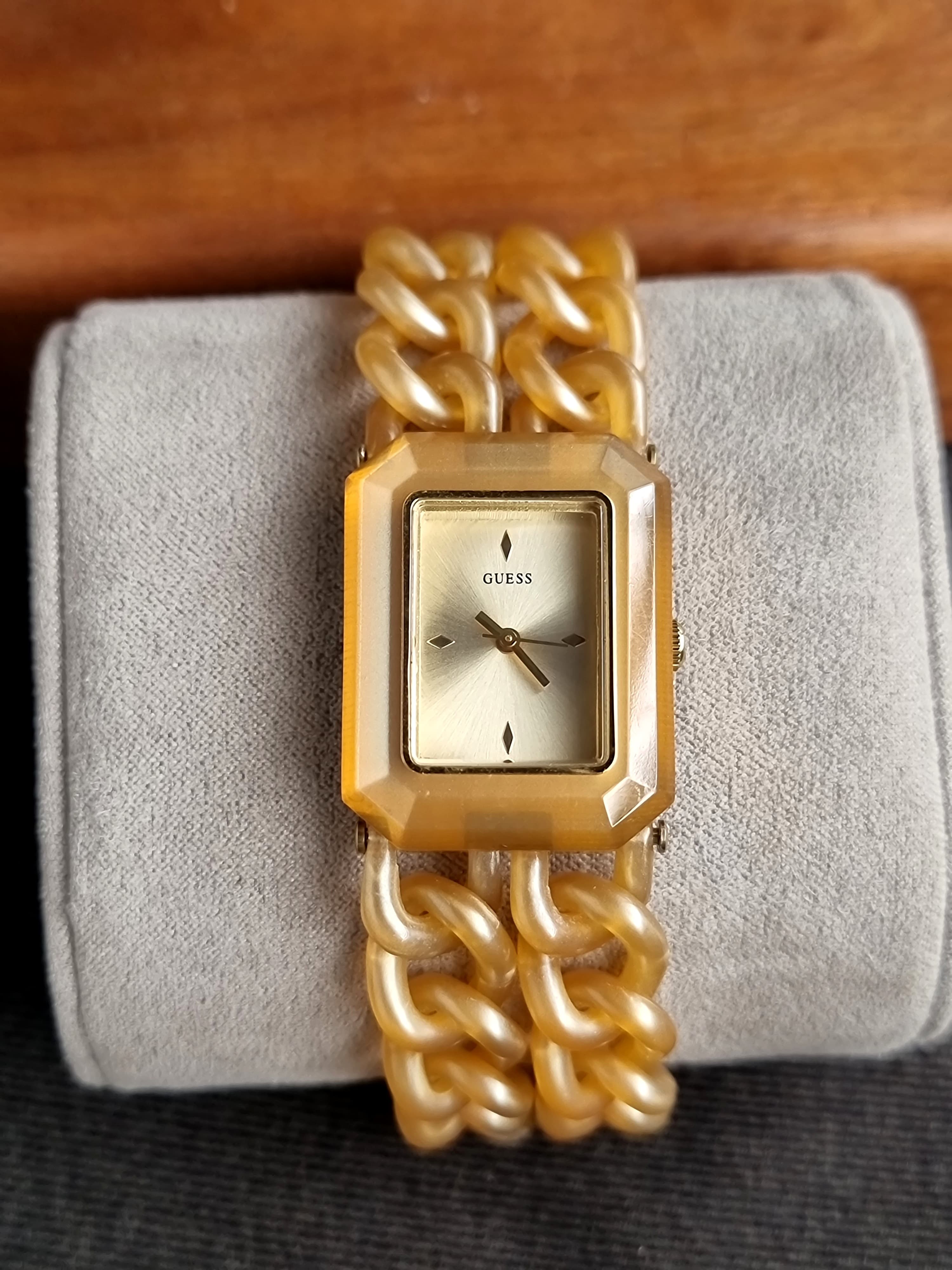 Guess Women's Peach Acrylic Chain Link Wrist Watch – Pre-OwnedWatches