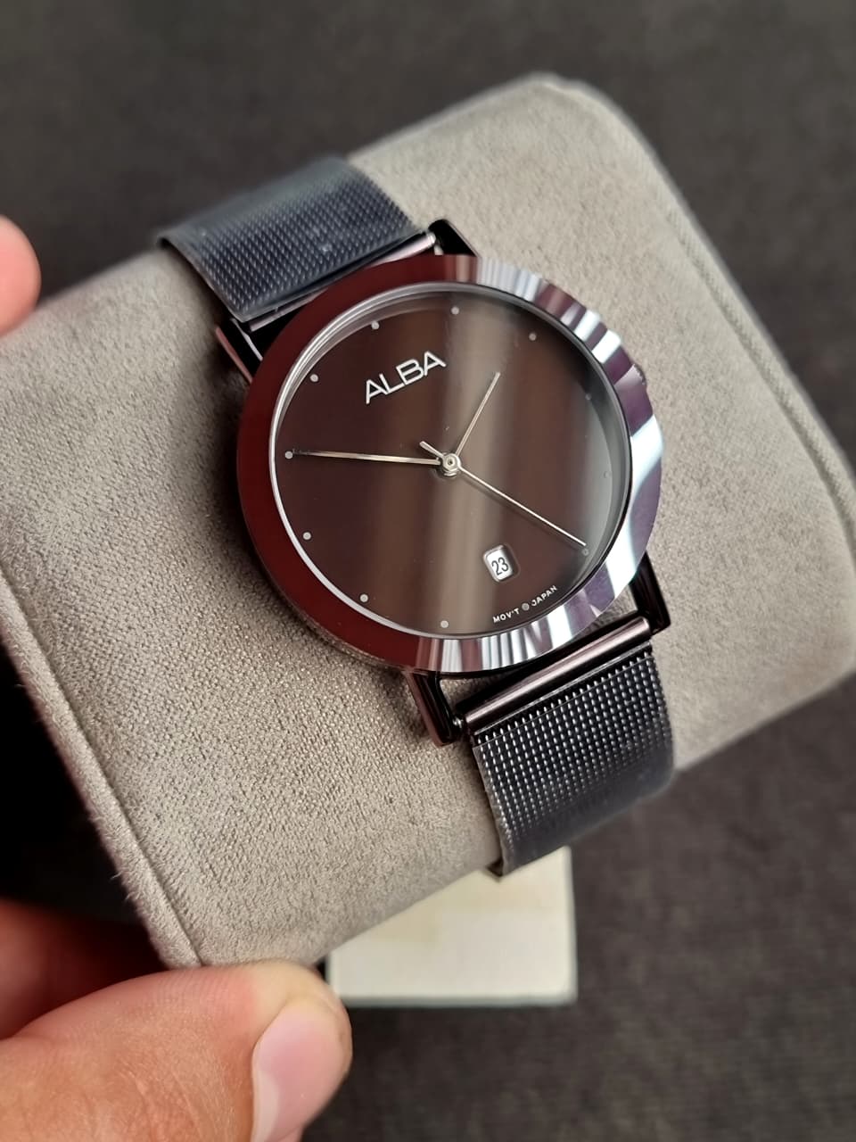 Brand Name Alba  Case material Stainless Steel  Case Color Silver  Dial Size 35mm  Dial Color Brown  Strap material Mesh Chain  Strap Color Silver  Quartz Watch