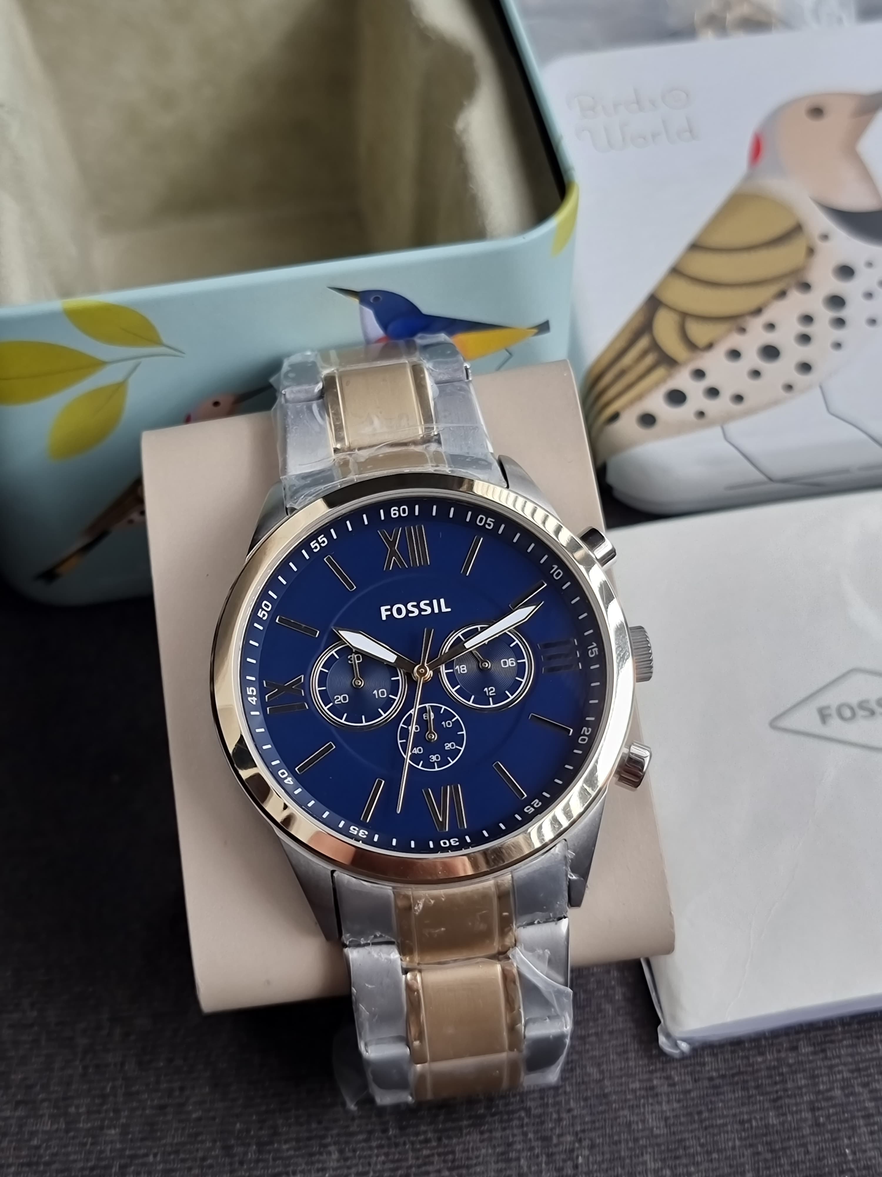 Fossil BQ2407 Flynn Chronograph 48mm Blue Dial Two Tone Steel Men's Watch