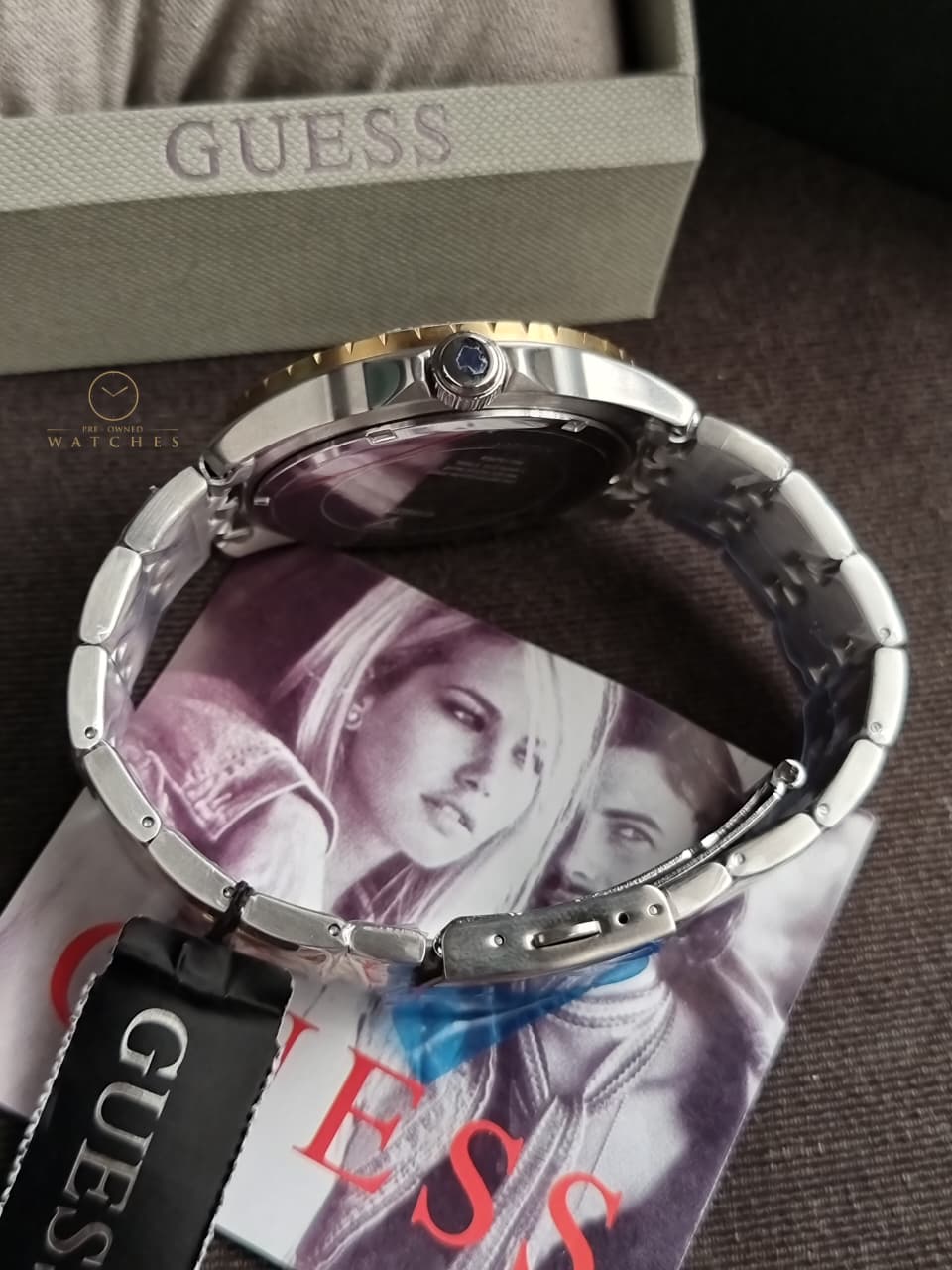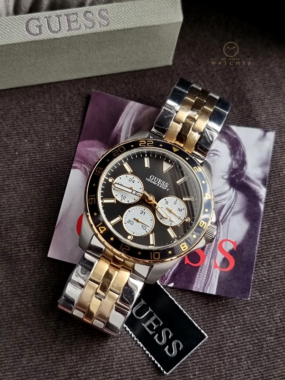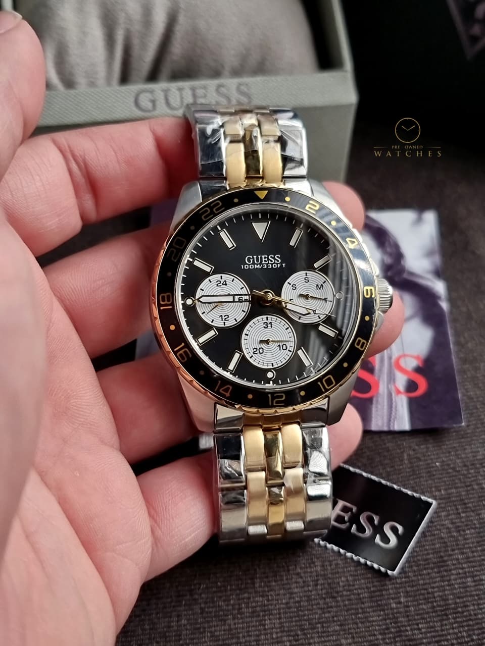 Guess Men’s Quartz Two-tone Stainless Steel Black Dial 44mm Watch W110 – Pre-OwnedWatches