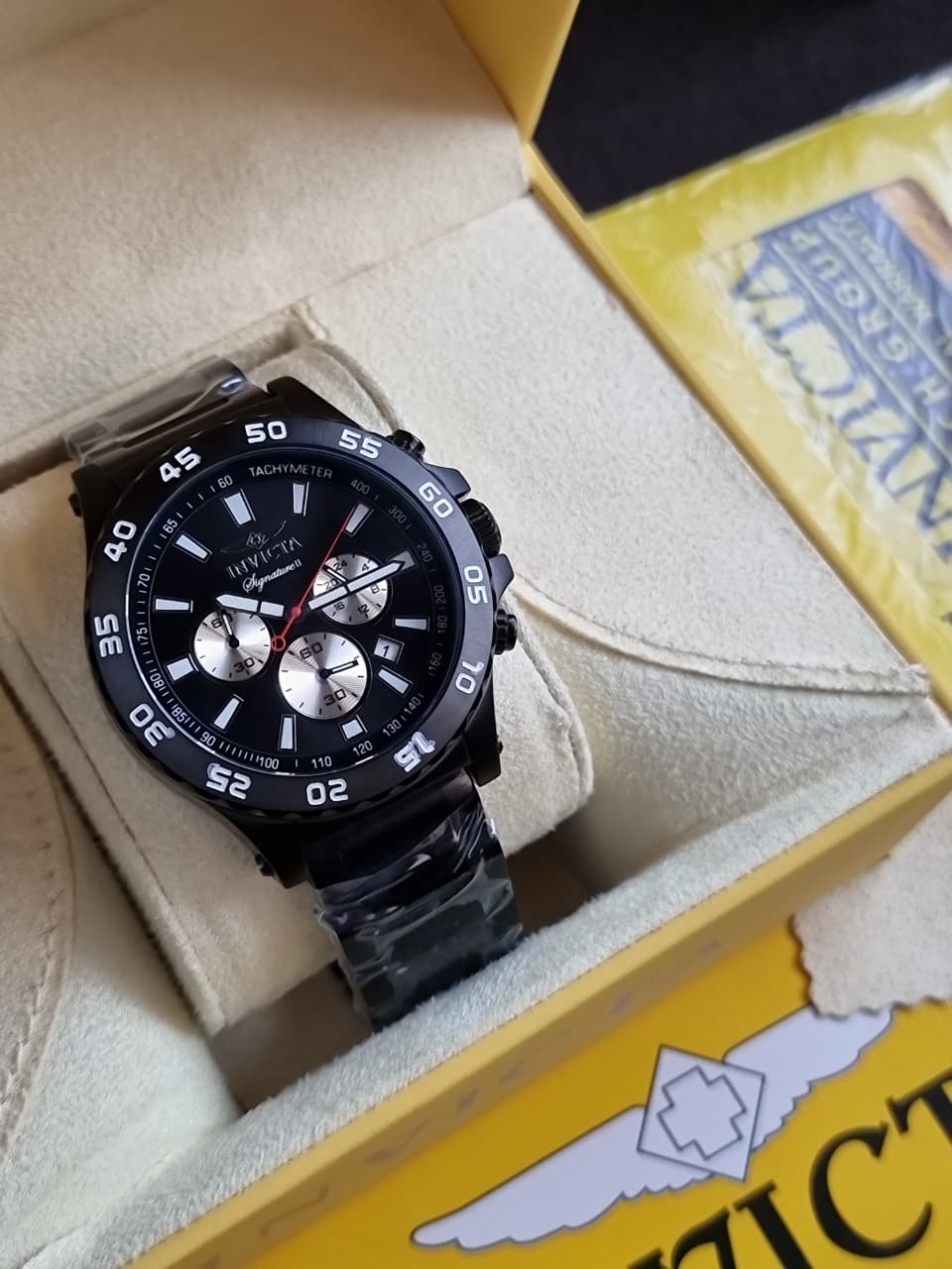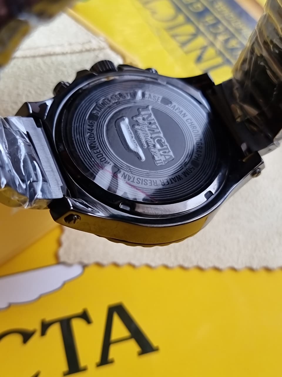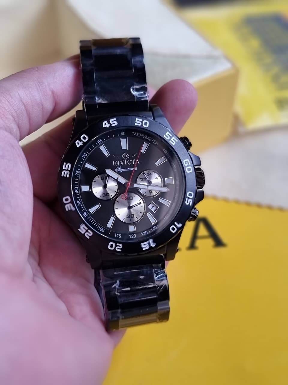 Brand Name Invicta  Case material Stainless Steel  Case Color Black  Dial Color black  Dial Size 44mm  Dial Color Black  White chronograph  Strap material Chain  Strap Color Black  Quartz Watch