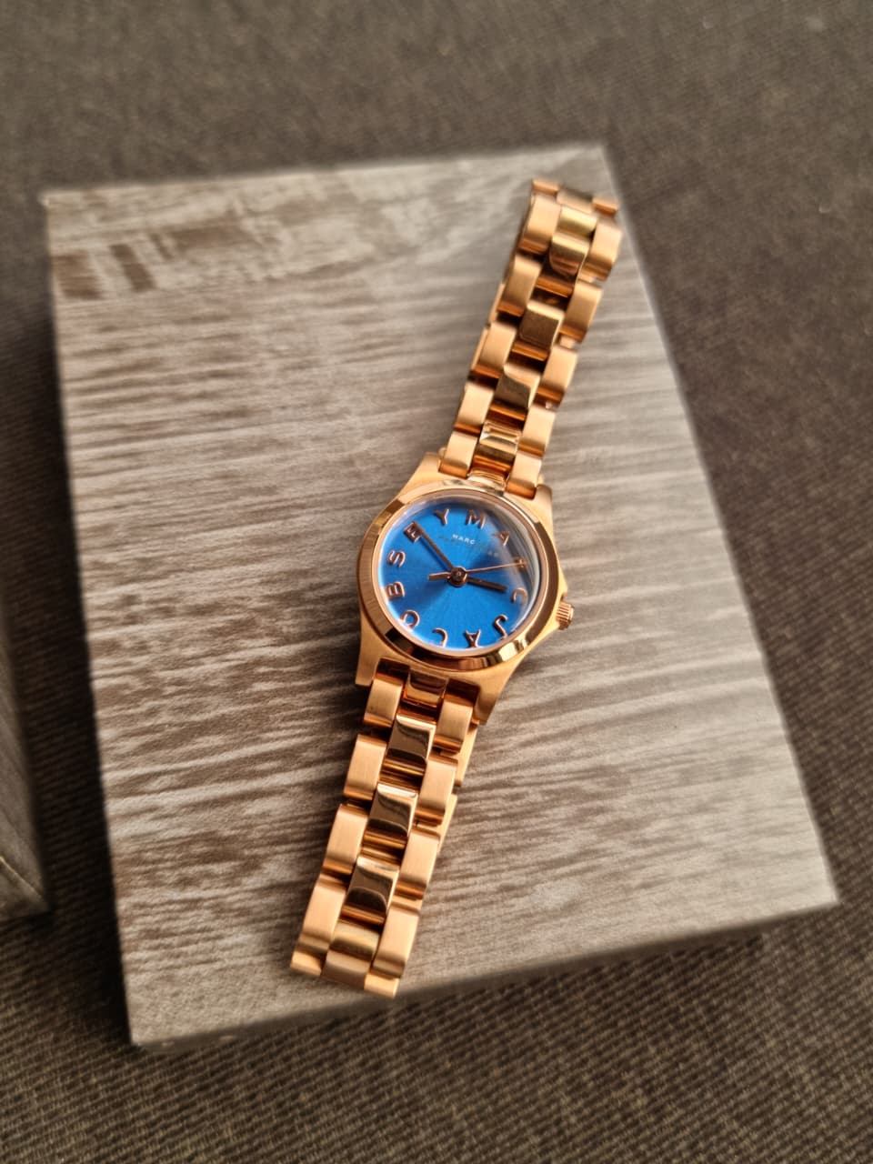 GENERAL COLOR: Blue / Gold / Rose INFORMATION BRAND: Marc By Marc Jacobs SERIES: Henry Dinky SERIES LABEL: Henry Dinky GENDER: Ladies MODEL: MBM3204 MOVEMENT: Quartz CASE CASE SIZE: 20.8 mm CASE THICKNESS: 4.95 mm CASE MATERIAL: Stainless Steel CASE SHAPE: Round CASE BACK: Solid BAND BAND MATERIAL: Stainless...