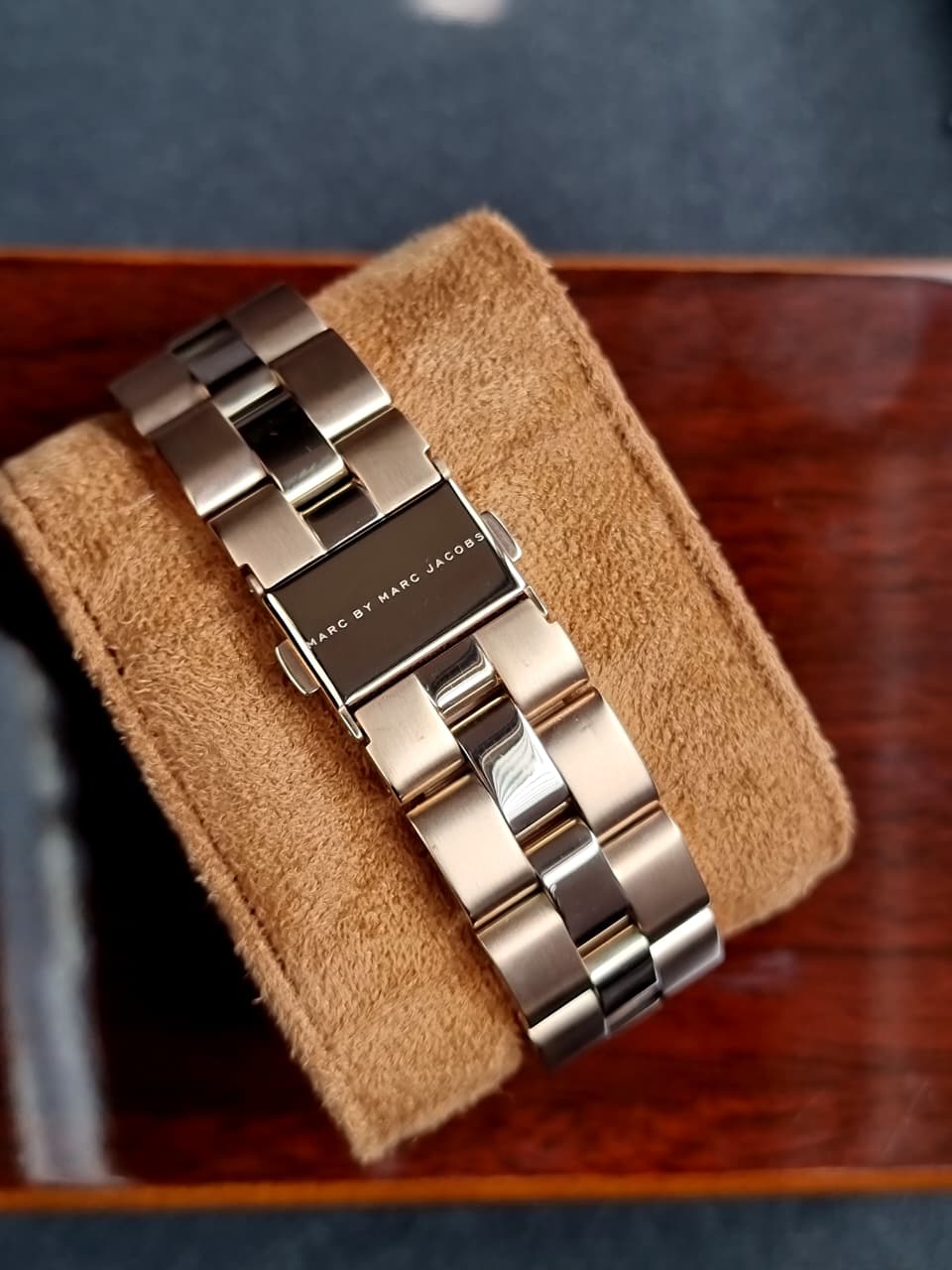 BRAND NAME Marc by Marc Jacobs MODEL NUMBER MBM3102 PART NUMBER MBM3102 MODEL YEAR 2012 ITEM SHAPE Round DIAL WINDOW MATERIAL TYPE Mineral DISPLAY TYPE Analog CLASP Deployment Clasp CASE MATERIAL Stainless Steel CASE DIAMETER 40 millimeters CASE THICKNESS 12 millimeters BAND MATERIAL Stainless Steel BAND SIZE Women’s Standard BAND...