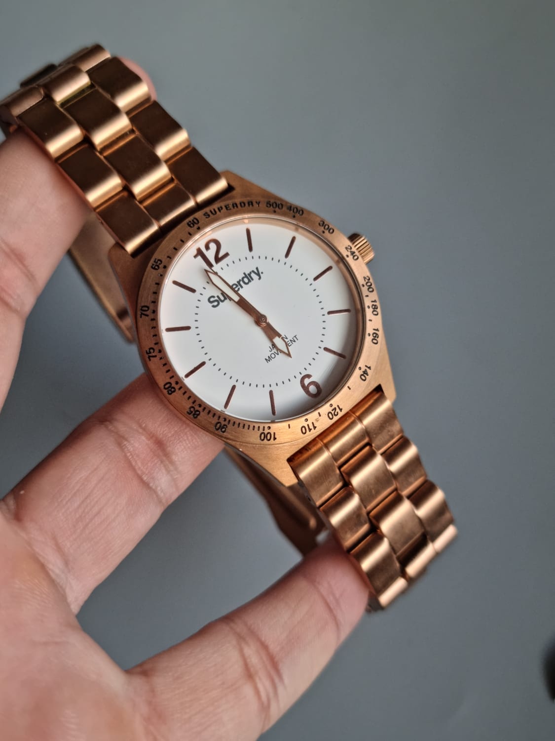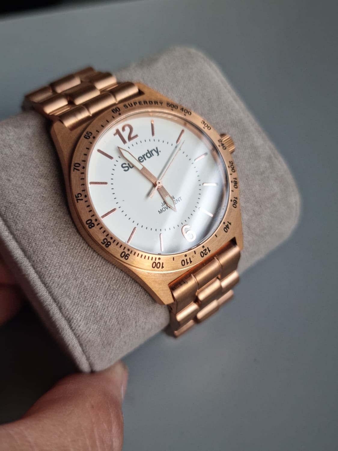 Superdry SYL124RGM-Women's Watch Analogue Quartz White Dial Steel Bracelet-Pink