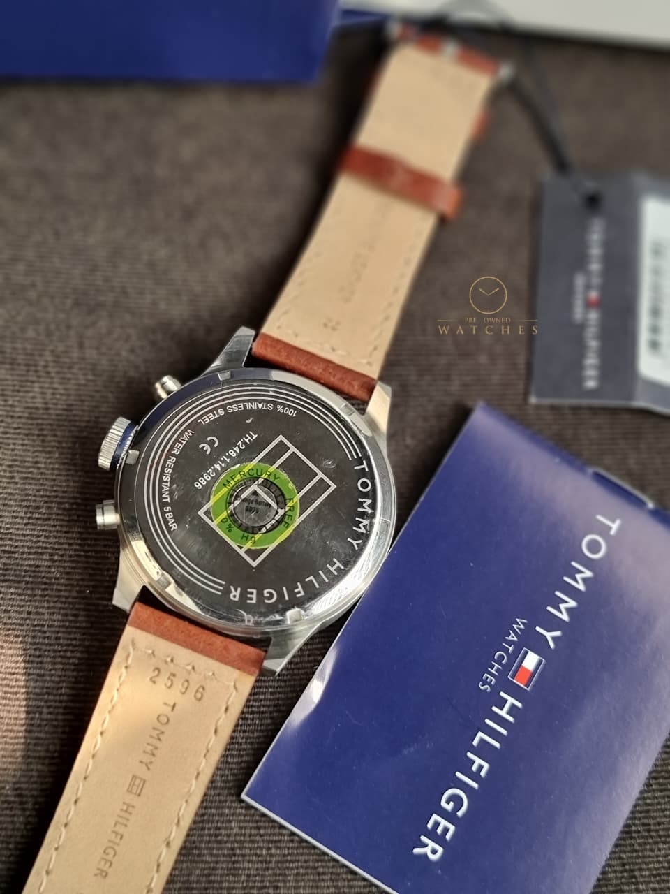 Tommy Hilfiger Men’s Quartz Brown Leather Strap Blue Dial 46mm Watch 1791807
