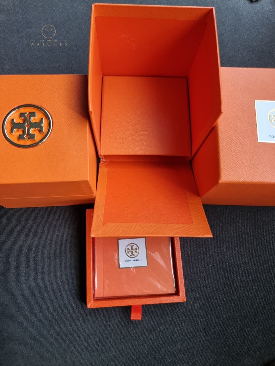Tory Burch Classic T Gold Stainless Steel Navy Blue Dial Quartz Watch for Ladies - TBW9010