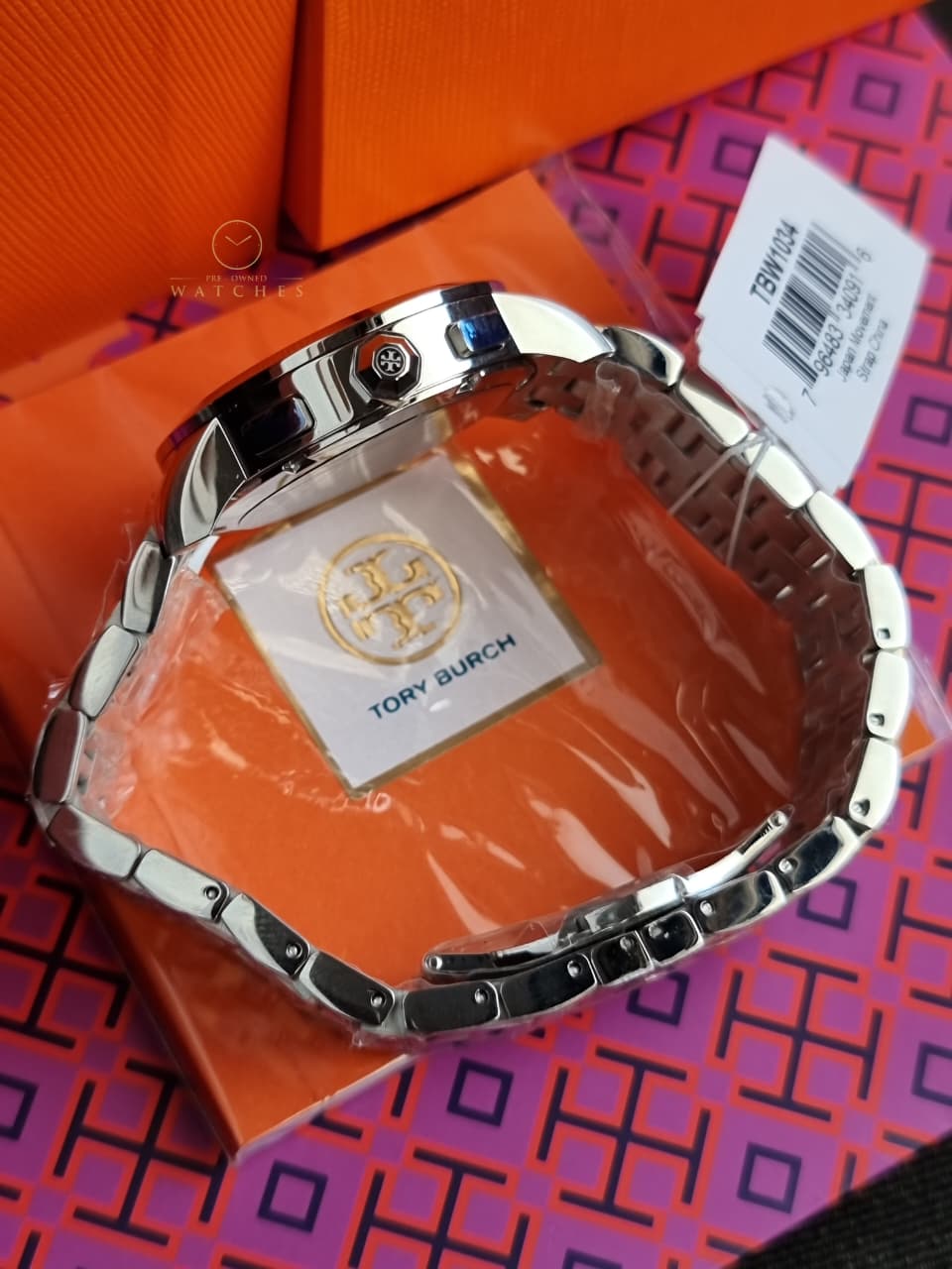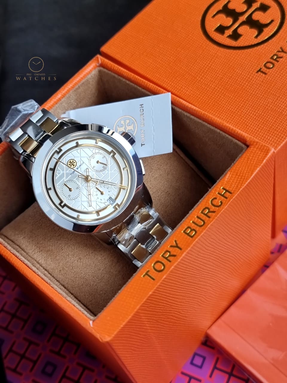 Tory Burch Classic Two Tone Stainless Steel Cream Dial Chronograph Quartz Watch For Ladies – TBW1034