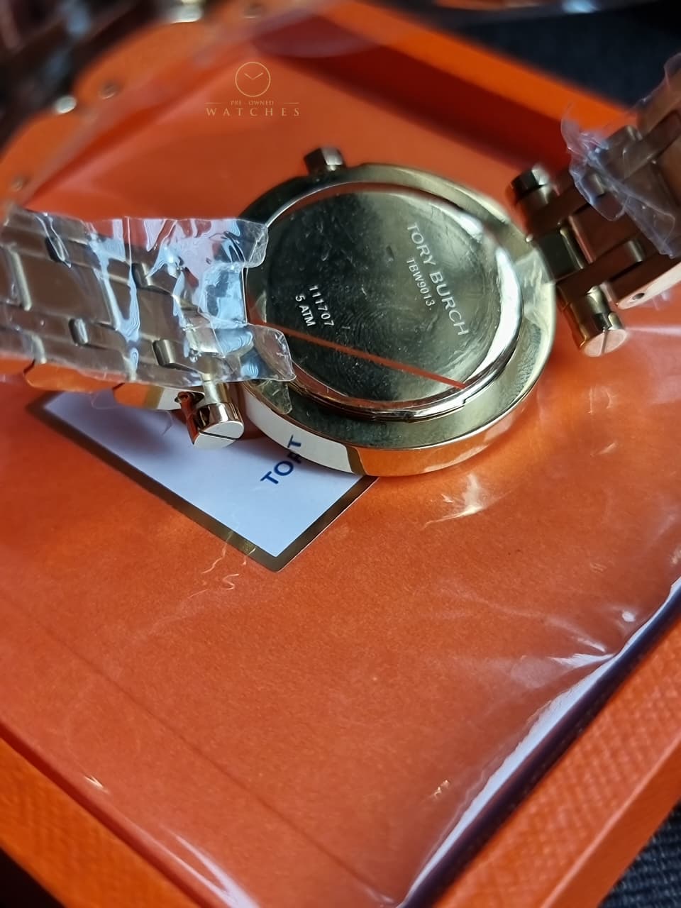 Tory Burch Women’s Quartz Gold Stainless Steel White Dial 30mm Watch TBW9013